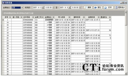 系統(tǒng)提供統(tǒng)計報表生成工具,實現(xiàn)對系統(tǒng)訪問次數(shù)的統(tǒng)計與分析,并以圖示直觀地反映出用戶關(guān)注的熱點?砂粗鹘刑柎a、局向統(tǒng)計時長,并自動生成效果圖,直觀表現(xiàn)業(yè)務發(fā)展。還可根據(jù)主叫統(tǒng)計時長,當天分析,本周分析,本月分析,提供時長走勢圖(可以以小時為單位分析時長的走勢,也可以以天為單位分析時長的走勢)