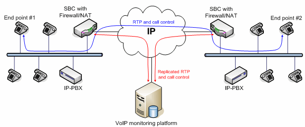 VoIP應用的質量監(jiān)控分為主動式和被動式兩種實現(xiàn)方式。主動式的系統(tǒng)能產(chǎn)生呼叫,而被動式的系統(tǒng)只是監(jiān)測進行中的呼叫。兩種方法各有優(yōu)勢。VoIP監(jiān)控方案的架構取決于網(wǎng)絡Edge設備的類型和結構。有些大型企業(yè)采用的VoIP網(wǎng)絡配備了一種特殊設備,叫SBC(Session boarder controller),除了完成類似路由器的功能外,還能完成流量分配、數(shù)據(jù)/語音信號加密以及業(yè)務質量控制等功能。此外,通過過濾和替換數(shù)據(jù)包內的、與用戶有關的特定信息,SBC還能隱藏公司的網(wǎng)絡拓撲結構和用戶信息,不被外部的IP世界所知道。