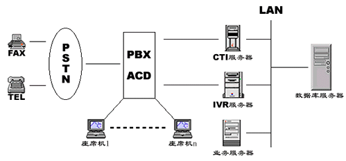 1.交換機+CTI服務(wù)器+IVR+傳真服務(wù)器….