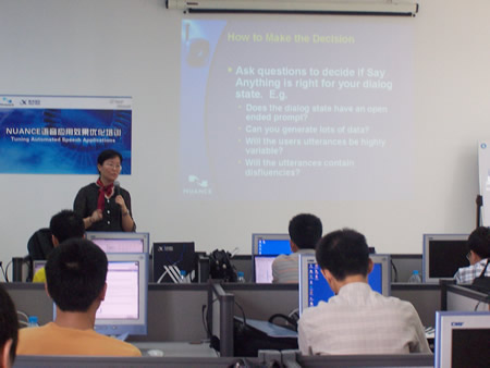 Nuance·科大訊飛聯(lián)合實驗室自成立以來始終重視與合作伙伴的協(xié)作關(guān)系,此次組織的"隨意說"與"準確路由"技術(shù)培訓,針對目前倍受關(guān)注的應用方向,比如娛音門戶、語音搜索引擎等,提供了強有力的技術(shù)支撐,使得合作伙伴可以根據(jù)需要開發(fā)出所希望的自然語音應用。參加培訓的工程師表示培訓內(nèi)容非常適應語音應用發(fā)展需要,為應用開發(fā)奠定了良好的基礎(chǔ),并希望Nuance與科大訊飛能夠持續(xù)地將此類專業(yè)技術(shù)培訓開展下去,給大家的工作提供支持與幫助,共同推動語音技術(shù)的應用不斷深化,并帶來更多價值。