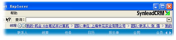 值得欣喜的是,部分CRM廠商意識到用戶迷路問題的嚴(yán)重性,并清楚IE瀏覽器具備的頁面歷史尋址(History Location)功能滿足不了頁面內(nèi)數(shù)據(jù)庫復(fù)雜、動態(tài)歷史條件的記憶,必須另外打造屬于CRM應(yīng)用程序自身的歷史堆棧。少許CRM軟件開始提供歷史“后退”、“前進(jìn)”按鈕,SynleadCRM歷史精確度保持領(lǐng)先地位。