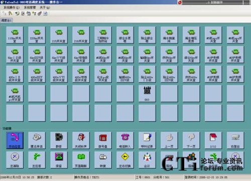 調度員通過觸摸屏(或者鍵盤鼠標)控制操作調度系統(tǒng),操作臺可以使用12個功能頁頁面。每個頁面共有22個功能按鍵和55個調度業(yè)務按鍵,55個調度業(yè)務按鍵可以根據(jù)具體調度業(yè)務需要靈活地編輯設置成直通呼叫鍵或組呼鍵。