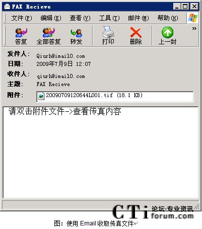 - 系統(tǒng)可以從傳真機(jī)接收高清晰度的傳真至個(gè)人傳真信箱、或Email中;