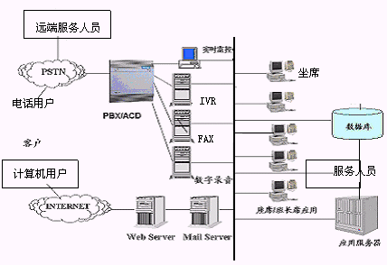 呼叫中心是伴隨著激烈的市場競爭和企業(yè)成功的經(jīng)營理念而生,既低端的價格競爭向高端的服務競爭以及對企業(yè)核心客戶的保持。它融合了傳統(tǒng)的公共電話網(wǎng)PSTN,計算機網(wǎng)絡,以及數(shù)據(jù)庫存儲技術和自動語音應答IVR等技術,將語音與數(shù)據(jù)資源有效的結合,為企業(yè)在技術上保證核心客戶的高忠誠度打下了堅實的基礎。