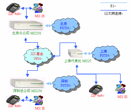 XX基金已經(jīng)建立總公司與分公司之間的VPN,在此基礎上建設IP語音系統(tǒng)能夠充分利用現(xiàn)有的VPN資源。