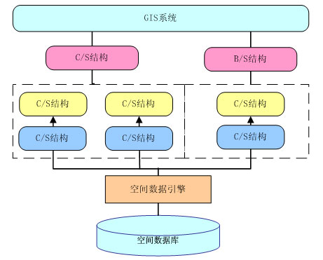 GIS應(yīng)用劃分成基于C/S結(jié)構(gòu)的應(yīng)用和基于B/S結(jié)構(gòu)的應(yīng)用兩種。前一種結(jié)構(gòu)適用于實現(xiàn)數(shù)據(jù)的采集、入庫、編輯和復(fù)雜的空間分析、專題制圖等應(yīng)用,主要是面向數(shù)據(jù)維護(hù)人員和專業(yè)分析人員使用的,以及為領(lǐng)導(dǎo)和專家提供輔助決策和分析之用;而后一種結(jié)構(gòu)比較適合于實現(xiàn)簡單的地圖發(fā)布、空間查詢等應(yīng)用,主要面向的是廣大的Internet用戶。由于這兩種結(jié)構(gòu)各有優(yōu)缺點,而從指揮中心的總體角度來看,兩種結(jié)構(gòu)的應(yīng)用都是不可缺少的。系統(tǒng)的總體結(jié)構(gòu)將是一個同時包含了C/S和B/S兩種結(jié)構(gòu)的混合型、綜合型結(jié)構(gòu)。系統(tǒng)結(jié)構(gòu)如下:
