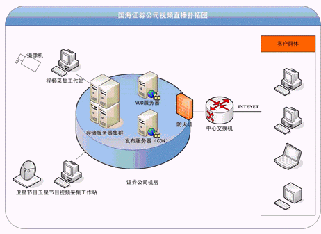 在同時(shí)對(duì)于局域網(wǎng)、廣域網(wǎng)進(jìn)行多路直播,采用一臺(tái)發(fā)布服務(wù)器就可以順利的完成發(fā)布工作了,由于公司方面對(duì)于系統(tǒng)錄制節(jié)目的要求,所以要有一臺(tái)服務(wù)器專們用來(lái)采集和存貯節(jié)目,在直播系統(tǒng)上, VIEWGOOD結(jié)合了自身的產(chǎn)品特點(diǎn),WebLIVE直播系統(tǒng)加強(qiáng)了采集、錄制與直播分離的優(yōu)勢(shì),采用了標(biāo)準(zhǔn)備的B/S架構(gòu),完全基于Web方式,可完全運(yùn)行于 Internet。在編碼技術(shù)上采用了最先進(jìn)的MPEG-4編解碼技術(shù),既保證了圖像的質(zhì)量,又大大縮減了視頻所占的帶寬,使得直播平臺(tái)更加的穩(wěn)定和高效。