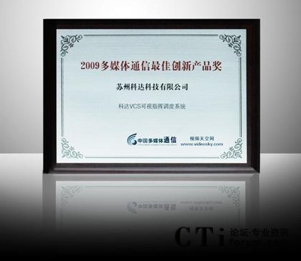 CTI論壇(ctiforum)3月29日消息(記者 袁青):近日,在《中國(guó)多媒體通信》雜志及視頻天空網(wǎng)強(qiáng)勢(shì)啟動(dòng)的“2009年度中國(guó)多媒體通信行業(yè)大獎(jiǎng)”評(píng)選活動(dòng)中,科達(dá)VCS可視指揮調(diào)度系統(tǒng)以其產(chǎn)品的專(zhuān)業(yè)性、直觀性、準(zhǔn)確性及有效性榮獲2009中國(guó)多媒體通信行業(yè)“創(chuàng)新產(chǎn)品獎(jiǎng)”。