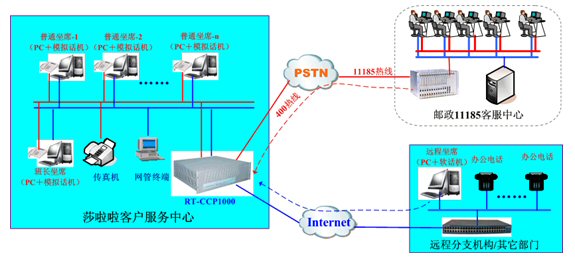 IP分布式特點(diǎn):對于莎啦啦這樣一個企業(yè)級客戶而言,呼叫中心只是企業(yè)的一個部門,這個部門需要與企業(yè)的其他部門協(xié)同工作,才能最大限度的發(fā)揮呼叫中心的作用。這就要求莎啦啦所部署的呼叫中心系統(tǒng)具備極為便捷的擴(kuò)展能力,在需要其他部門響應(yīng)客戶服務(wù)時,能夠?qū)⑵渌块T的相關(guān)人員立即升級為更專業(yè)的二線坐席來協(xié)同處理。而傳統(tǒng)的呼叫中心系統(tǒng)中,在需要協(xié)同服務(wù)時,臨時部署二線坐席或者辦公電話,顯然是不可能的,而為其他部門設(shè)立專家坐席,對于資金有限的企業(yè)而言,其成本和收益往往又不成比例。那么基于IP的技術(shù)則可以非常輕松的解決這一矛盾。RT-CCP1000自帶的免費(fèi)軟電話,能夠通過標(biāo)準(zhǔn)的SIP或者H.323協(xié)議和局域網(wǎng)使莎啦啦的任何專業(yè)人員可以立即加入到整個呼叫中心系統(tǒng)坐席組中。