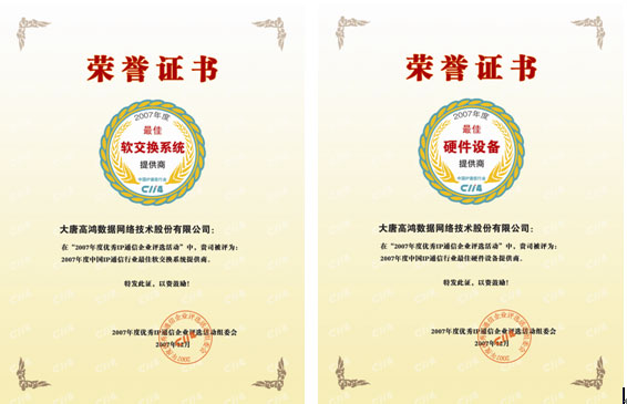 日前,由C114中國通信網主辦的“2007年度優(yōu)秀IP通信企業(yè)評選活動”圓滿結束。大唐高鴻數據網絡技術股份有限公司(以下簡稱“大唐高鴻”)憑借雄厚實力喜獲“2007年度中國IP通信行業(yè)最佳軟交換系統(tǒng)提供商”和“2007年度中國IP通信行業(yè)最佳硬件設備提供商”兩項大獎。這是大唐高鴻繼2007年4月榮獲中國VoIP論壇“2006年最佳中繼網關提供商”和“2006最佳VoIP解決方案提供商”兩項大獎之后的又一次實至名歸。