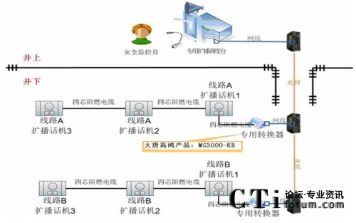 隨著防爆工業(yè)以太環(huán)網(wǎng)在煤炭企業(yè)應(yīng)用的成熟,大唐高鴻公司推出了基于IP的煤礦擴(kuò)播通信系統(tǒng),可以完美的解決上面提到的問題。