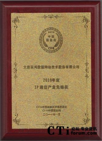 在評選工作中,通過專家評選以及廣大網(wǎng)友投票選舉,高鴻股份數(shù)據(jù)網(wǎng)絡(luò)技術(shù)股份有限公司(以下簡稱“高鴻股份”)憑借自身雄厚實(shí)力和優(yōu)良服務(wù),在2010年的工作得到了大家充分的肯定,喜獲 “IP通信產(chǎn)業(yè)先鋒獎”獎項(xiàng)。