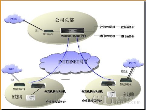 - 企業(yè)、部門和分支機構可以采用MG3000-T4或Mg3000-R與PSTN互通。