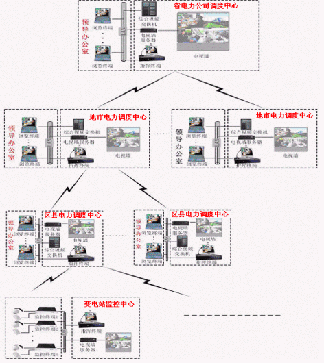 省調(diào)-地調(diào)-縣調(diào)-各變電站監(jiān)控中心,按照隸屬關(guān)系可進(jìn)行視頻調(diào)度。