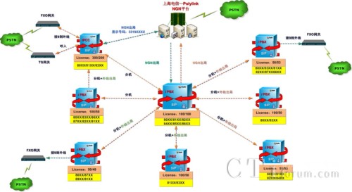 2.呼入從Polylink提供的VoIP語音服務或是FXO口網(wǎng)關呼入,呼出從Polylink-NGN平臺呼出。