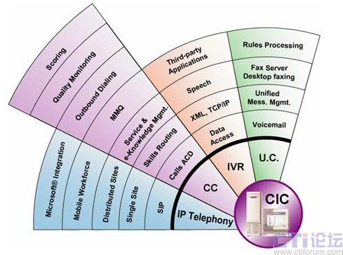 CIC平臺是一套符合呼叫中心營運(yùn)所需,且有其營運(yùn)所需模塊的All In One設(shè)備,如數(shù)字交換機(jī)、PABX、CTI、IVR、ACD、 Screen Pop、數(shù)據(jù)庫整合、網(wǎng)站整合服務(wù)(Web Call Back、Web Chat、VON、E-mail)、傳真服務(wù)器、傳真自動回復(fù)、Dialer、Scripter、在線錄音...等所有功能,采用CIC平臺的系統(tǒng)比基于傳統(tǒng)PBX的系統(tǒng)更加易于維護(hù)。 CIC為企業(yè)體帶來一個(gè)功能齊備,技術(shù)人員及值機(jī)人員可以自己完全掌握的Call Center系統(tǒng),并且也是一個(gè)最上算投資報(bào)酬率ROI(Return Of Investment)的解決方案。