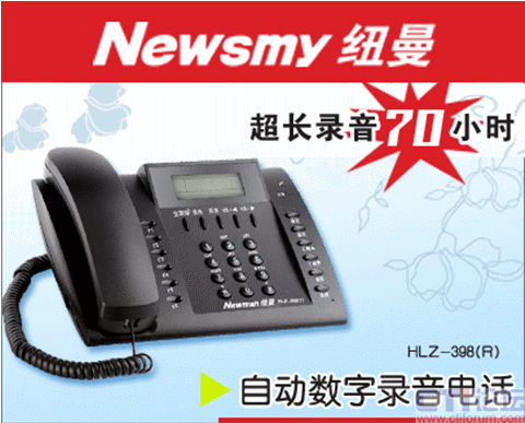 據(jù)紐曼專賣店通訊產(chǎn)品負(fù)責(zé)人介紹,紐曼這次推出的數(shù)字錄音電話之所以能轟動整個通訊市場,最大的原因就是這款錄音電話與傳統(tǒng)的錄音電話有著很本質(zhì)的區(qū)別。傳統(tǒng)的錄音電話要么是通過是磁帶錄音,要么就是需要連接電腦錄音,無法達(dá)到長時間實時錄音的效果。紐曼這次推出的數(shù)字錄音電話最大的特點就是無需連接電腦,插入電話線就可以實時錄音,錄音時長從400小時到1600小時不等,并且支持電腦和本機兩種查詢方式。