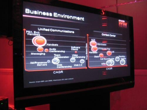 圖:Avaya眼中的商業(yè)環(huán)境(紅色為優(yōu)勢(shì)領(lǐng)域,灰色為潛在市場(chǎng))