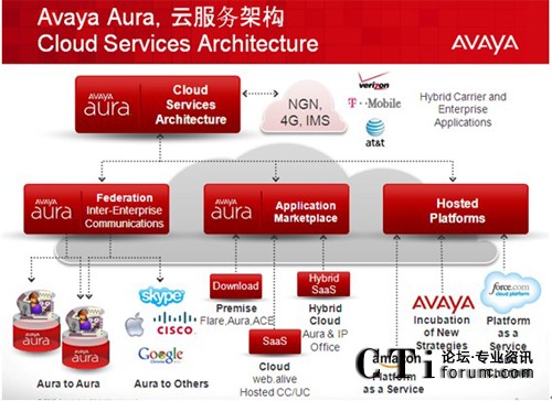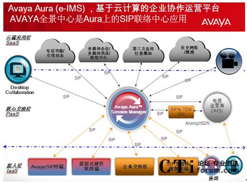 - 當(dāng)其他廠商還在爭論公有云和私有云的優(yōu)劣時(shí),Avaya已經(jīng)開始部署企業(yè)的私有云—Avaya Aura 和運(yùn)營商的公有云之間如何和諧共處;企業(yè)用戶的統(tǒng)一通信功能完全基于”按需服務(wù)激活”模式;