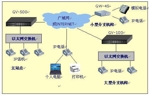 - 此拓樸圖示意了企業(yè)內(nèi)部VoIP通訊系統(tǒng)和傳統(tǒng)的電話交換系統(tǒng)并存模式,此種結(jié)構(gòu)最小的改動(dòng)客戶原有的電話布線結(jié)構(gòu),最大化的方便公司成員的使用;