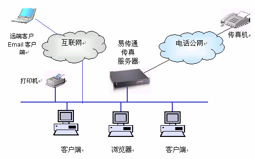 易傳通 網絡傳真服務器是基于網絡的瀏覽器/服務器與客戶端/服務器(B/S 與C/S)設計的,它采用了易傳通 專業(yè)的系統(tǒng)設計,包括國家驗證的專業(yè)傳真軟件系統(tǒng),配上專用的硬件,一體化設計,只需接上網線、電話線,電源,即可使用,用戶無需添加任何其他設備,即可讓您享受網絡傳真帶來的方便、安全、快捷。