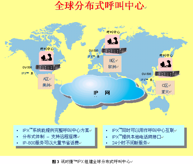 ③ 全球IP呼叫中心(參見圖3)