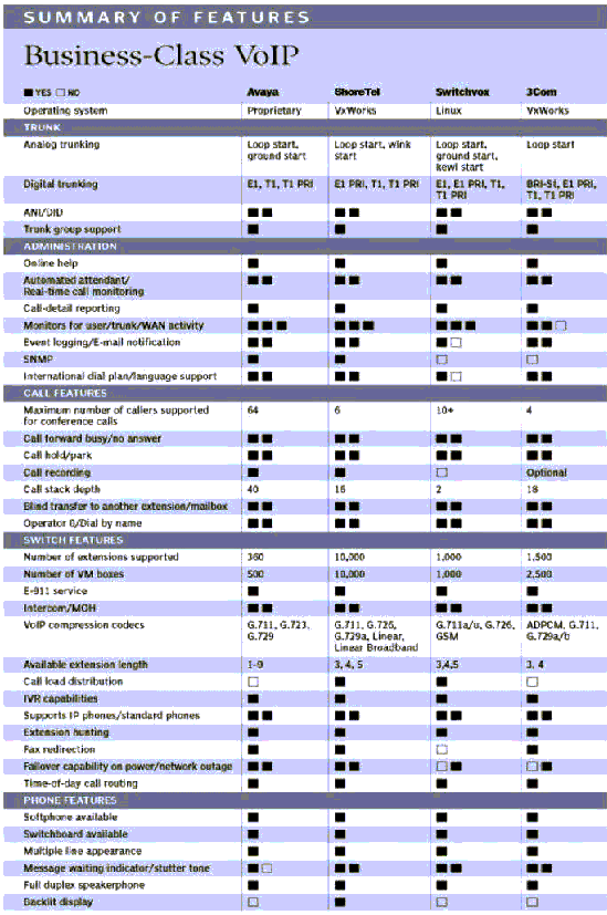 附:第三方測評。美國著名計算機雜志《PC Magazine》在2005年第11期發(fā)表了其對當前流行的企業(yè)級VoIP電話系統(tǒng)第三方測評結(jié)果,以下是原文掃描摘錄: