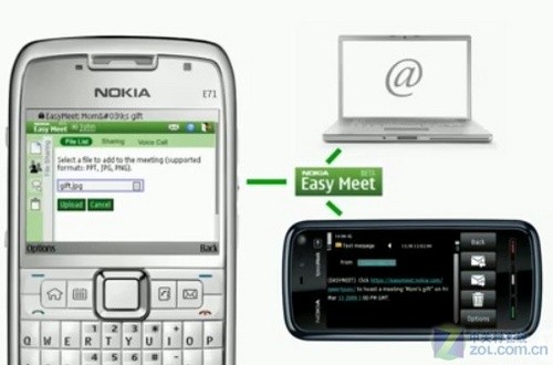 北京時(shí)間2009年4月16日,諾基亞發(fā)布Easy Meet,這是一款移動(dòng)設(shè)備共享工具,可以實(shí)現(xiàn)移動(dòng)設(shè)備與移動(dòng)設(shè)備或PC之間的實(shí)時(shí)共享,并且所有的共享并不需要另外下載軟件,僅用手機(jī)自帶的瀏覽器就可實(shí)現(xiàn),非常方便。用戶(hù)僅需正確的輸入Easy Meet的地址鏈接,就可成功的創(chuàng)建連接,并向每位連接人發(fā)送電子郵件或者SMS,僅需一鍵確認(rèn),每位參與人就可通過(guò)Easy Meet查看共享文件,參與互動(dòng)或者直接使用別的設(shè)備上的內(nèi)容。