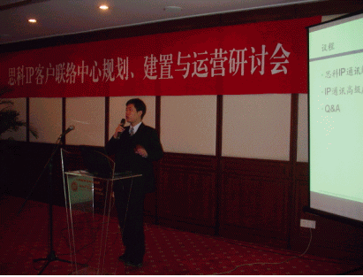 2點整,主持人宣布會議正式開始。首先是正音科技公司執(zhí)行副總秦裕農(nóng)先生致開幕詞。秦先生從2000多年前的周幽王烽火戲諸侯娓娓道來,一直講到IP技術在音頻、視頻上的應用,為大家生動形象地描述了通訊技術發(fā)展的歷程。在演講的最后,秦先生指出了一個客戶聯(lián)絡中心所應該具備的特性:"在這個客戶聯(lián)絡中心里,客戶應該能夠隨時隨地的通過電話、傳真、郵件、網(wǎng)絡電話、文字聊天、web協(xié)同等各種各樣的方式,第一時間找到企業(yè),解決他們的問題;在這個客戶聯(lián)絡中心里,企業(yè)能夠廉價地把分布于全國各地的服務資源聯(lián)系起來,進行統(tǒng)籌管理,統(tǒng)一為客戶提供服務;在這個客戶聯(lián)絡中心里,企業(yè)可以隨時把一個空閑的客戶服務人員調(diào)整為電話銷售人員,而不用去修改復雜系統(tǒng)設置;在這個客戶聯(lián)絡中心里,任何一個可以接入互聯(lián)網(wǎng)的員工,不管他身在地球的哪一個角落,都可以隨時隨地的接入系統(tǒng),變成一個坐席,為客戶提供專業(yè)的服務。"秦先生描述的這個完美的客戶聯(lián)絡中心立即博得了陣陣掌聲,同時也引起了與會者的極大興趣,如何才能實現(xiàn)這個猶如夢中的呼叫中心呢?"相信通過今天的研討會,各位會得到了一個滿意的答案",秦先生最后自信的向大家保證。