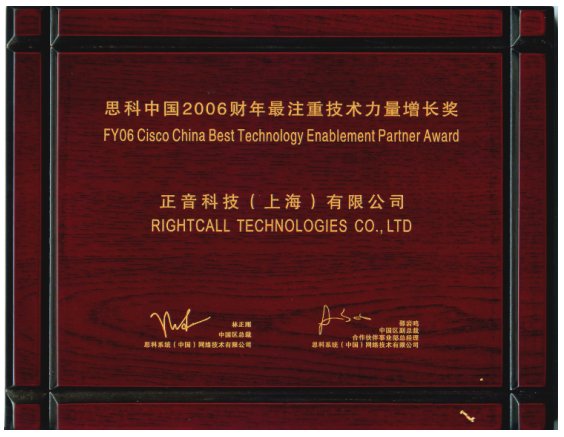 正音科技榮獲“思科中國2006財(cái)年最注重技術(shù)力量增長獎”