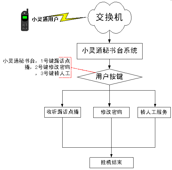 小靈通秘書臺業(yè)務(wù)系統(tǒng)結(jié)構(gòu)見下圖: