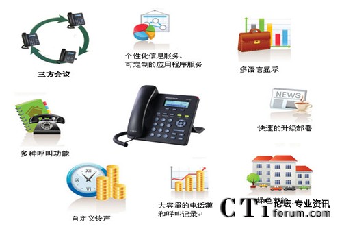 - 用戶(hù)自定義鈴聲,SRTP,SIP over TLS,支持多種語(yǔ)言和XML,支持個(gè)性化的信息服務(wù)、可定制的應(yīng)用程序服務(wù)支持和多語(yǔ)言顯示(例如:本地天氣等)。