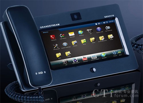 可視電話(huà)這個(gè)術(shù)語(yǔ)早在20 世紀(jì)60年代就已經(jīng)出現(xiàn),人們一直孜孜不倦地追求著更便捷的視聽(tīng)通信。而SIP協(xié)議和H.264視頻壓縮算法的誕生為網(wǎng)絡(luò)可視電話(huà)提供了更廣闊的發(fā)展前景。這就意味新一代的可視電話(huà)產(chǎn)品能夠協(xié)同工作,并且為市場(chǎng)增長(zhǎng)打下了基礎(chǔ)。而Grandstream 潮流網(wǎng)絡(luò)最新推出的這款可視電話(huà)GXV3175正是上述兩項(xiàng)完美結(jié)合體。GXV3175是一款多媒體視頻電話(huà),可它遠(yuǎn)不僅僅是一款視頻電話(huà)。