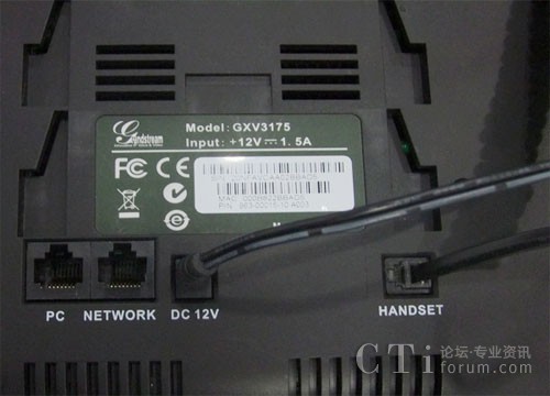 當(dāng)然,除了之前提到的擴(kuò)展接口外,作為一款視頻電話(huà)所必需的接口,GXV3175也必不可少。機(jī)身背面有連接電話(huà)手柄的接口、12V電源接口和兩個(gè)以太網(wǎng)口。當(dāng)您的家里或者辦公桌下面只有一個(gè)網(wǎng)口的時(shí)候,有PC口的存在就不會(huì)耽誤你的電腦聯(lián)網(wǎng)了。NETWORK這個(gè)接口還支持PoE供電功能。另外,GXV3175的兄弟型號(hào)還支持FXO接口,支持通過(guò)PSTN打電話(huà)。