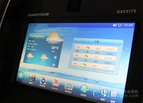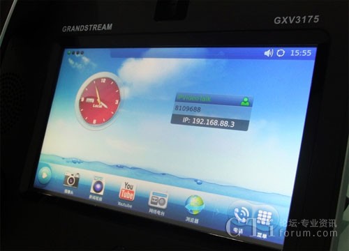 之前已經(jīng)說(shuō)到,GXV3175采用了一款7英寸的電阻式觸摸屏,雖然和現(xiàn)在高端的平板電腦的電容屏相比有一定的劣勢(shì),但這樣的配置在IP視頻電話(huà)里已屬相當(dāng)高端的配置了。同時(shí)該屏幕采用目前比較主流的800x480的WVGA分辨率。配合自家開(kāi)發(fā)的UI界面,精細(xì)程度非常不錯(cuò)。