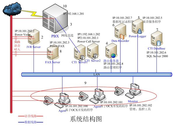 - IVR Server和FAX Server采用高品質(zhì)的工控機(jī),配置和軟件環(huán)境基本一樣。每臺(tái)機(jī)器均有30路語音接入,分別裝有一套Power