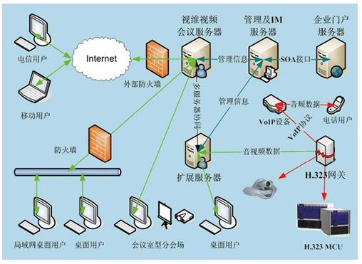 視維系統(tǒng)是一個基于IP網(wǎng)絡的綜合業(yè)務通訊平臺,通過多網(wǎng)絡接入方式實現(xiàn)網(wǎng)通、電信、聯(lián)通等用戶間高速互通;通過H.323模塊將企業(yè)內部原有的硬件設備與視維系統(tǒng)鏈接起來,有效的節(jié)約了投資;其他如SIP模塊,短信模塊,固網(wǎng)電話接入等都可以根據(jù)用戶需要進行擴展。視維系統(tǒng)可以支持分布式視頻服務器集群,可利用企業(yè)內部網(wǎng)絡或者互聯(lián)網(wǎng)構建超大規(guī)模企業(yè)綜合通訊平臺。基于“面向服務體系架構(SOA)”設計架構,實現(xiàn)很靈活地方便地與其業(yè)務系統(tǒng)如OA,HR,CRM,