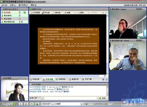 CTI論壇(ctiforum)05月19日消息: 自08年攜手視維Super-V視頻會議以來,中石油雅安分公司銷售部的日常工作會議高效及時地開展,尤其是在5.12四川大地震后,工作不但沒有中斷,而且足不出戶就可以給上級領(lǐng)導(dǎo)匯報工作,與同事交流營銷心得。而在以前,只能通過電話或者郵件,甚至長途跋涉聚集到一個地方舉行會議,既浪費時間又增加營銷成本。這是繼中國重汽、新加坡協(xié)美集團(tuán)等跨國集團(tuán)公司倡導(dǎo)信息時代新營銷主義,實現(xiàn)高效運營的又一典型案例應(yīng)用。