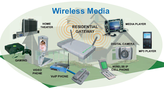 在家中傳送廣播質(zhì)量的視頻將需要住宅網(wǎng)關(guān)整合多種有線和無線技術(shù)、安全特性和服務(wù)質(zhì)量(QoS)能力。住宅網(wǎng)關(guān)需要支持最新的無線連網(wǎng)技術(shù),例如目前的802.11g以及暫露頭角的802.11n、802.11d/e和802.11r標(biāo)準。多種有線家庭連網(wǎng)技術(shù)也在考慮之內(nèi),所以住宅網(wǎng)關(guān)應(yīng)能支持以太網(wǎng)、同軸電纜多媒體聯(lián)盟(MOCA)、家用電話線網(wǎng)絡(luò)聯(lián)盟(HPNA)、家庭插電聯(lián)盟(HPPA)和通用電力線協(xié)會(UPA)等機構(gòu)推出的有線家庭聯(lián)網(wǎng)技術(shù)。