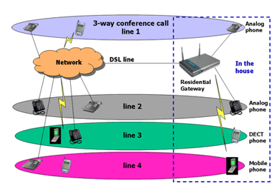下一代住宅網(wǎng)關(guān)提供領(lǐng)先的數(shù)據(jù)能力,且還可擔(dān)當(dāng)家庭語音和數(shù)字通信的中樞。某些住宅網(wǎng)關(guān)將支持用VoIP替換標(biāo)準普通老式電話服務(wù)(POTS),而其它網(wǎng)關(guān)將提供用于固定移動融合(FMC)的平臺,從而更進一步。這就允許消費者在室外時,利用與常規(guī)移動電話一樣工作、支持Wi-Fi的移動電話通過蜂窩網(wǎng)絡(luò)接打電話和接入互聯(lián)網(wǎng)。當(dāng)消費者回屋后,電話會感知這一變化并與無線局域網(wǎng)(WLAN)連通,然后可將其當(dāng)無繩VoIP電話使用。市場研究公司iSupply預(yù)計,2006年售出了2,200萬部具有Wi-Fi功能的移動電話,到2010年,該數(shù)字將達2.85億部。