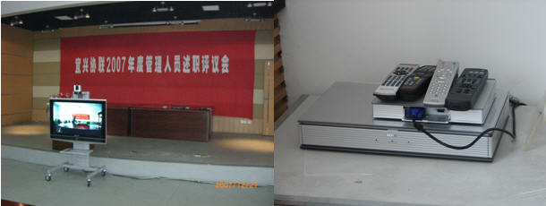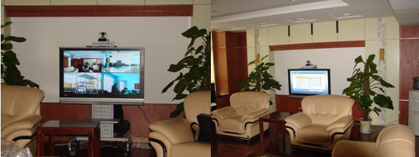 在宜興公司大樓二樓的貴賓室內(nèi),配置一套SONY PCS-1P視頻會議終端;并在此終端內(nèi)安裝了支持6點(diǎn)多點(diǎn)會議的H.323內(nèi)置多點(diǎn)MCU。