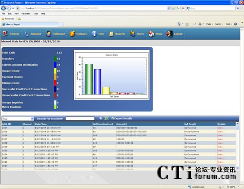 該公用事業(yè)部門很快發(fā)現(xiàn)他們所管理的呼叫量出現(xiàn)很大的變化,尤其是在賬單的支付、信用卡的處理和賬戶史的查詢等方面。2007年1月,公用事業(yè)機構的OnCall系統(tǒng)所管理的報告日志顯示有2,694個呼叫,很多天都顯示