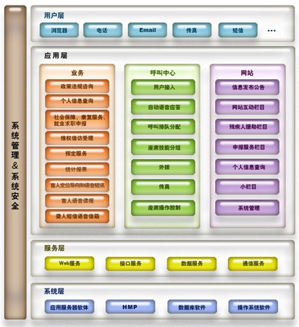 用戶層是呼叫系統(tǒng)與系統(tǒng)使用者之間的聯(lián)系層。工作人員可以通過瀏覽器進入系統(tǒng)的業(yè)務(wù)部分進行工作,處理相應(yīng)事務(wù);用戶可以通過電話打入系統(tǒng)的呼叫中心部分,獲得自動或人工服務(wù),也可以通過Email、短信、傳真等方式與系統(tǒng)聯(lián)系;同時,系統(tǒng)可以進行電話外撥,聯(lián)系相關(guān)部門或進行主動服務(wù)。