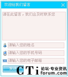 17.網(wǎng)站留言:網(wǎng)站留言是用于在CSR2000用戶的網(wǎng)站頁面上添加一個(gè)窗口,通過這個(gè)窗口,網(wǎng)站的訪問者可以輸入自己的聯(lián)系方式與需求情況,然后由CSR2000系統(tǒng)將信息傳遞給座席,如下圖:
