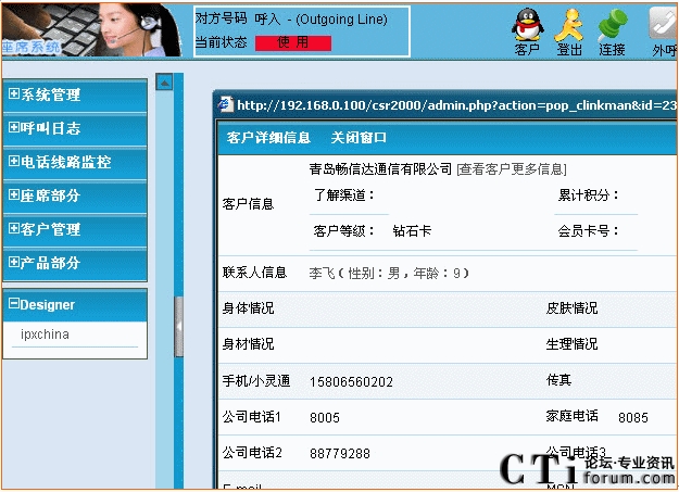 維護(hù)人員在局域網(wǎng)絡(luò)環(huán)境下,通過自己PC機(jī)的瀏覽器的頁面即可完成對(duì)呼叫中心系統(tǒng)的管理和維護(hù):