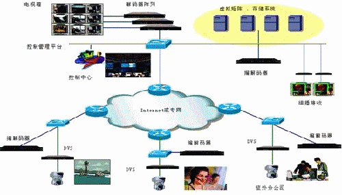 本系統(tǒng)采用數(shù)碼視訊的9000系列H.264、AVS編解碼產(chǎn)品以及EU3000系列DVS產(chǎn)品組建,系統(tǒng)的建立,用戶不需要固定的IP地址、線路,無(wú)論是身在何地都可以通過(guò)筆記本或是PC參于到視頻通訊當(dāng)中。