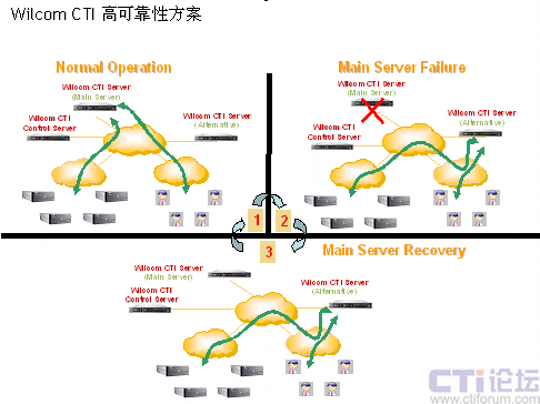 CTI 高可靠性方案確保在系統(tǒng)出現(xiàn)故障以后,坐席軟電話登入/登出不受任何影響。