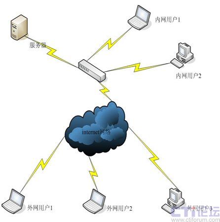 由于視頻會(huì)議系統(tǒng)服務(wù)器放在總部?jī)?nèi)網(wǎng),通過端口影射,內(nèi)網(wǎng)用戶用內(nèi)網(wǎng)服務(wù)器地址登陸,外網(wǎng)用戶通過外網(wǎng)IP登陸即可,實(shí)現(xiàn)內(nèi)外網(wǎng)互聯(lián)。