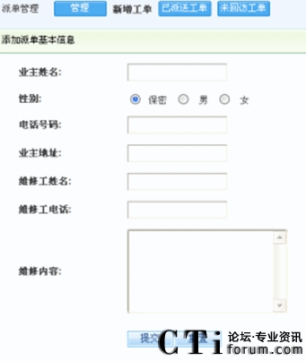 新增加派單:當服務人員接到客戶投訴后,確定客戶有此需求,就可以通過工單來派發(fā)任務(具體界面如下圖):