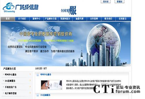 深圳市廣域成信息咨詢有限公司成立于2002年,是專業(yè)的CRM及呼叫中心外包服務(wù)提供商,8年的行業(yè)經(jīng)驗(yàn),致力于為我們的客戶提供專業(yè)數(shù)據(jù)庫(kù)營(yíng)銷解決方案,包括呼叫中心外包、客服外包、電話營(yíng)銷、手機(jī)廣告、DM直郵、品牌推廣、電子郵件服務(wù)等。